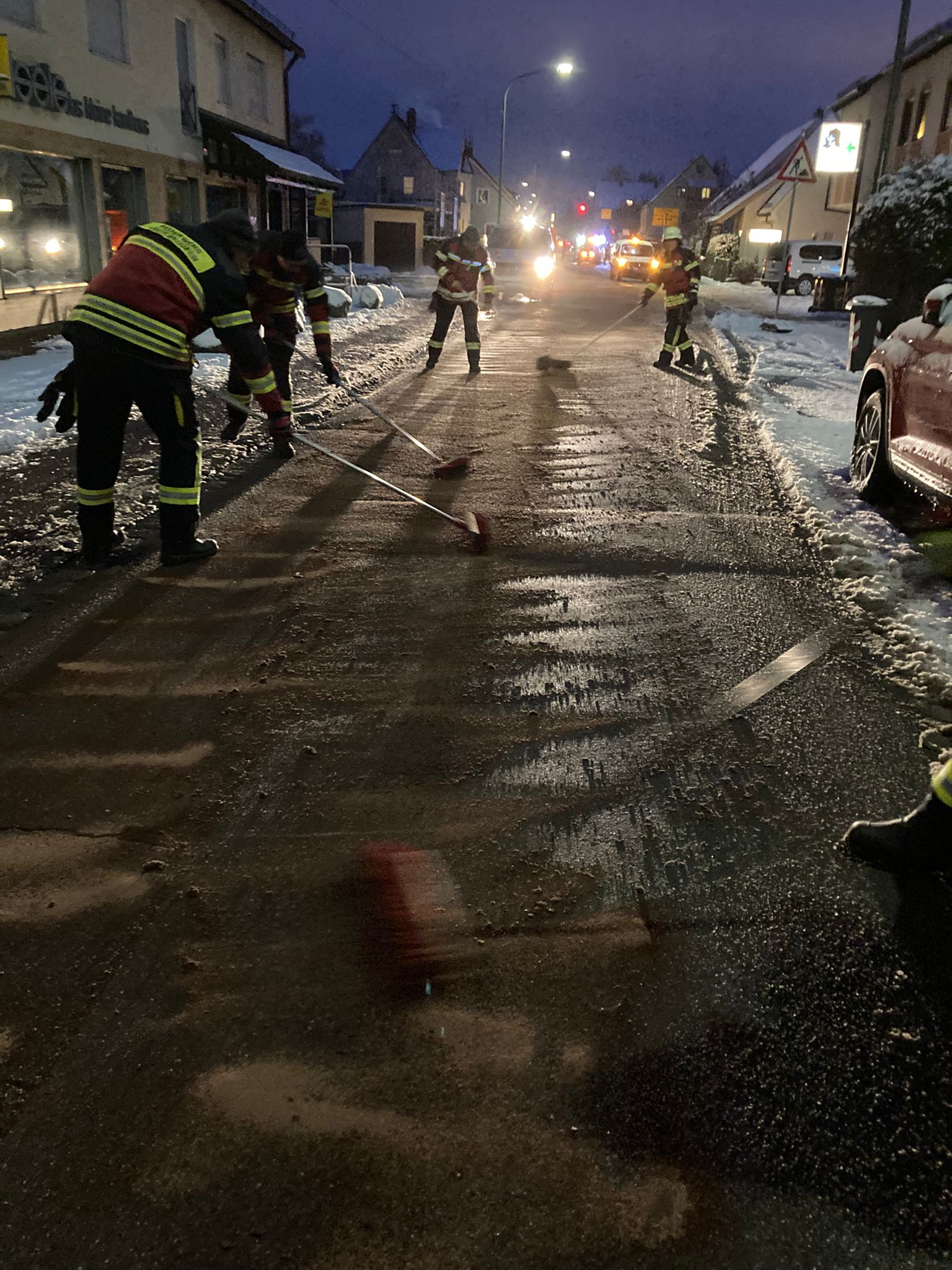Gemeinsam wurde dann die Ölspur abgebunden und beschildert.